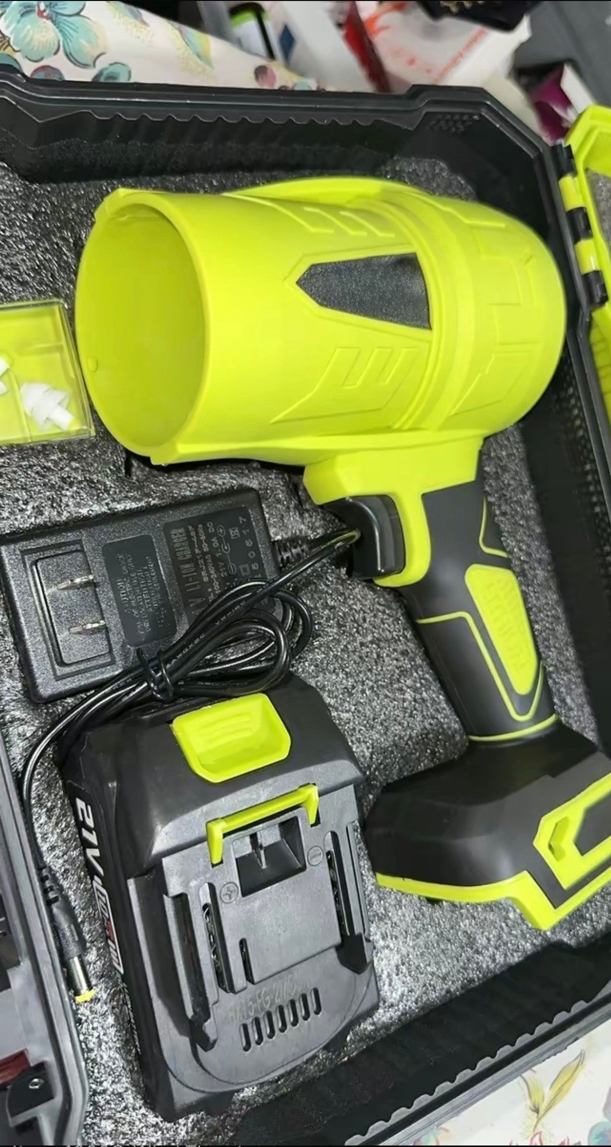 O kit inclui o soprador, a bateria, o carregador e os acessórios indicados na descrição do produto.