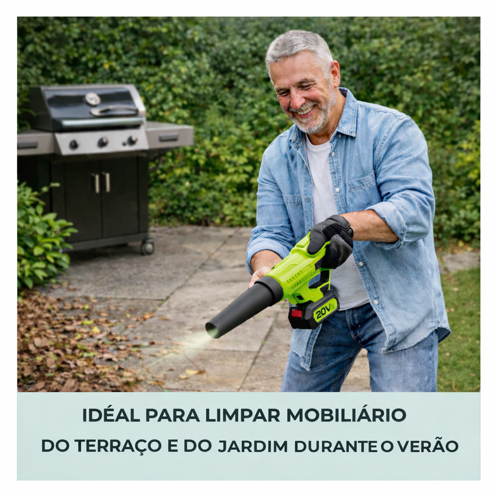 O soprador de folhas Zalivos, potente e eficiente, possui baterias de 21 V – 4000 mAh com carregador rápido para uma autonomia de até 1,5 horas. Desfrute de uma limpeza rápida e sem esforço em grandes superfícies graças à sua potência constante.