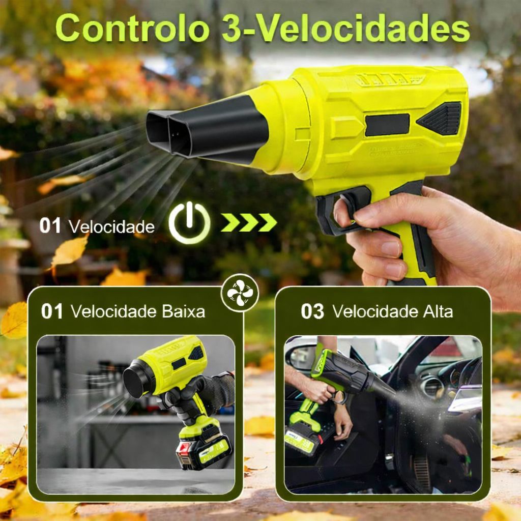 Basta inserir a bateria e pressionar o gatilho: o motor de alto binário fornece instantaneamente um fluxo de ar potente, sem instalação, sem mangueiras e sem curva de aprendizagem.